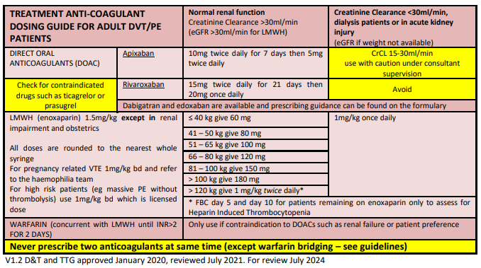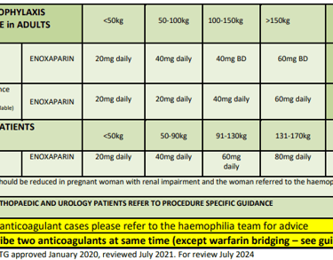 Click the button below to view Enoxaparin Dosing Guide for Prophylaxis of Venous Thromboembolism in Adult Medical and Surgical Patients (non-pregnant) by Gloucestershire Hospitals NHS Foundation Trust...