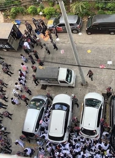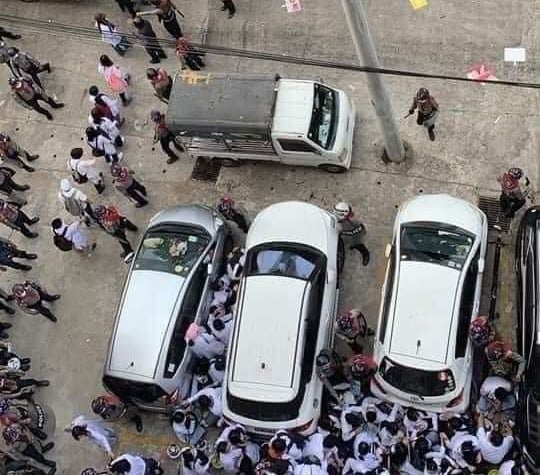 ☝🏽 Medical students and doctors peacefully protesting against military coup were cornered and arrested by brutal soldiers.