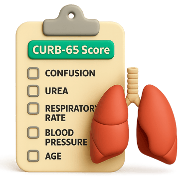 Assesses pneumonia severity using confusion, urea, respiratory rate, blood pressure, and age. Helps stratify risk and guide management decisions.