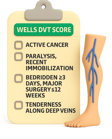 Predicts the probability of deep vein thrombosis using clinical features such as leg swelling, tenderness, and risk factors.