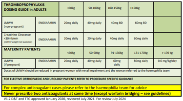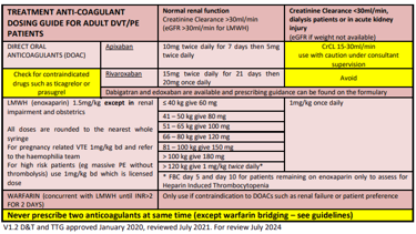 Body weight, renal function (calculated as creatinine clearance [CrCl] using Cockcroft-Gault equation – eGFR should not be used as it is not equivalent) and individual contraindications/bleeding risk factors should be checked before prescribing.